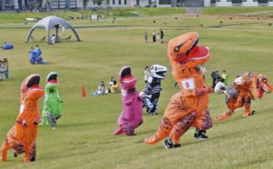 カラフル「恐竜」が全力ダッシュ! 苫小牧でティラノサウルスレース【北海道新聞】