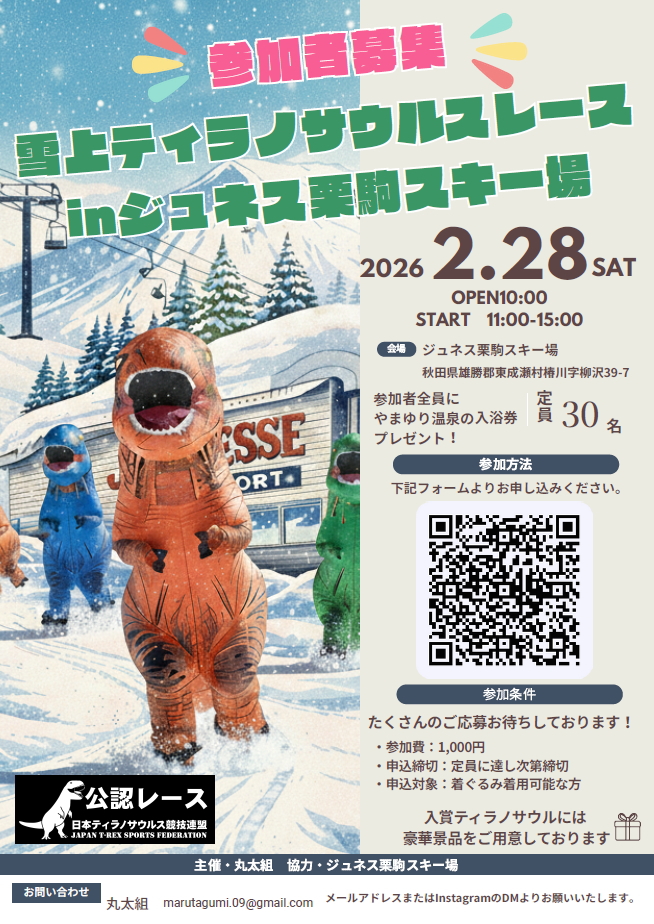 秋田県雄勝郡東成瀬村で2026年2月28日(土)に公認レース開催決定【日本ティラノサウルス競技連盟】
