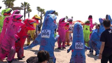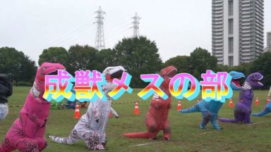 ティラノサウルス仮装レース開催!みんなの動き面白い